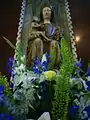 Our Lady of Westminster is a late late medieval statue of the Madonna and child, now placed at the entrance of the Lady Chapel in Westminster Cathedral, London, under the thirteenth Station of the Cross. The image is an English alabaster, flat backed, 36 inches (91 cm) high, and depicts the Virgin Mary enthroned with the Christ child on her right knee. Mary is crowned and holds a sceptre (now broken) in her left hand, the Christ child looks up at her and holds a globe with one hand, whilst with the other he blesses it. The statue is one of the greatest treasures of the cathedral, and the oldest item housed in the 19th-century foundation.
