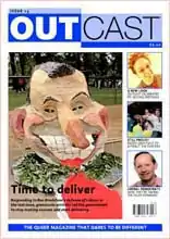 - "Our articles poked fun at respected people, challenged long-established ideas and disproved widely-accepted 'facts' - not because these points were especially important in themselves but because they got people to think about queer things in new ways. Ideas come and go, but our beliefs about the bigger picture will always affect how we respond to new ideas in the future. I think Stonewall will be a very different organisation in a couple of years, I think the gay press will be different and I think London Mardi Gras will be a thing of the past. None of that will be down to Outcast directly, but we've done our bit. We've contributed to the debate, and the debate goes on."