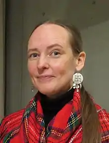 Outi Pieski (born 1973) is a Sámi visual artist from Finland whose paintings, collages and installations employ traditional handicrafts such as the tassels of Sámi shawls to depict the light and landscapes of the far north. In 2017, she was honoured with the Fine Arts Academy of Finland Award.[1][2][3]