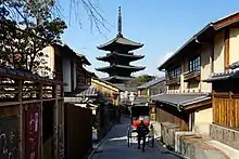 Street in the Higashiyama-ku district with the Yasaka-no-to Pagoda in the background