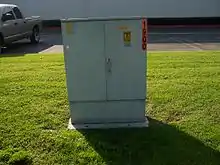 Outside plant cabling, whether copper or fiber, is generally installed as aerial cable between poles, in an underground conduit system, or by direct burial.[2] Hardware associated with the outside plant must be either protected from the elements (for example, distribution frames are generally protected by a street side cabinet) or constructed with materials suitable for exposure to the elements. Installation of the outside plant elements often require construction of significant physical infrastructure, such as underground vaults.[3] In older large installations, cabling is sometimes protected by air pressure systems designed to prevent water infiltration. While this is not a modern approach, the cost of replacement of the older cabling with sealed cabling is often prohibitively expensive.[4] The cabling used in the outside plant must also be protected from electrical disturbances caused by lightning or voltage surges due to electrical shorts or induction.[5]