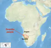 listen)), also called Aawambo, Ambo, Aawambo (Ndonga, Nghandjera, Kwambi, Mbalantu), or Ovawambo (Kwanyama) the biggest of the Aawambo sub-tribes [3] are a Bantu ethnic group native to Southern Africa, primarily modern Namibia. They are the single largest ethnic group in Namibia, accounting for about half of the population[1] and one of Namibia’s most vibrant tribes. They have retained many aspects of their cultural practices, despite concerted efforts from Christian missionaries to wipe out what was believed to be ‘pagan practices’.[4] They are also found in southern Angolan province of Cunene where they are more commonly referred to as "Ambo".[5][6] The Ovambo consist of a number of kindred Bantu ethnic tribes who inhabit what was formerly called Ovamboland. In Angola, they are a minority, accounting for about two percent of the total Angolan population.[7]