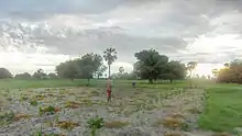 The Ovambo people reside in the flat sandy grassy plains of north Namibia and the Cunene Province in south Angola, sometimes referred to as Ovamboland.[8] These plains are generally flat, stoneless and at high altitude.[9]