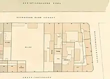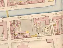 The property was home to three households at the 1840 census. Niels Severin Müller (1776-), a merchant (grosserer), resided on the ground floor with his wife Marie K. Poulsen and one maid.[3] Dorothea Catharina Olsen, widow of a distiller, resided on the second floor with her daughter Oline Charlotte Cecilia Olsen, governess Clara Theodora Hansen Gjersing (in wine merchant Hansen's household) and one maid.[4] Frederik Wind Schneider, a book printer, resided on the third floor with his wife Karen Elisabeth /née Kofoed) and one maid.[5]