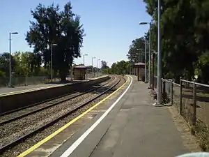 It is one of the very few stations in the network with no dedicated passenger parking. The station is serviced by two tracks. The two side platforms are accessible by pedestrian crossings at either end. The standard gauge line behind the Gawler bound platform is only used for interstate passenger and freight services. The station has two tin style shelters the same as at Kilkenny and Dudley Park .