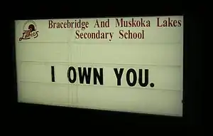 The phrase "own" can not only refer to defeating one particular player or team, but it can also be used to indicate total domination of the competition. The racing video game Need for Speed: Nitro follows this definition by awarding a special bonus called "Own it", in which a player earns points for every second they spend in first place, while also expressing their dominance visually to other opponents by painting every portion of the course where they lead with their tag and colors.[8][9]