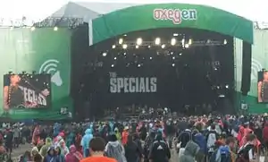 The festival slot was the only Irish performance by Kings of Leon in 2009.[4] It also featured the only Irish live performance of Blur in 2009. The Killers were voted most popular band in an official poll conducted on the Oxegen website after the event.[5] The band later used footage from the festival on their live DVD Live from the Royal Albert Hall, released on 6 November that year.[6] Oxegen 2009 was officially opened by the Artane Band on 10 July at 14:00.[7][8] The festival was heralded as "a marvel of organisation" when compared to the Woodstock Festival held in the United States in 1969.[9]