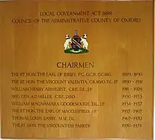 County councils were first introduced in England and Wales with full powers from 22 September 1889 as a result of the Local Government Act 1888, taking over administrative functions until then carried out by the unelected quarter sessions.[10] The areas they covered were termed administrative counties and were not in all cases identical to the traditional shire counties, but in Oxfordshire the whole 'ceremonial county' came under the authority of the new council. The new system of local democracy was a significant development and reflected the increasing range of functions carried out by local government in late Victorian Britain.