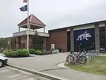 Oyster River High School (ORHS), part of the Oyster River Cooperative School District (ORCSD), is a public high school located in Durham, New Hampshire, United States, with an enrollment of nearly 800 students.[2] It serves Durham and the neighboring communities of Lee, and Madbury. The high school opened, and the first graduating class was in 1956. Dean Sackett was the Chairman of the School Board, Arthur E. Toll was the Superintendent of Schools, John H. Day was Principal, and George W. Pasichuke was the Associate Principal. The school yearbook is named Trion, named by Margaret Campbell in a school-wide contest.[3] The high school moved to its present site on October 22, 1964.[4]