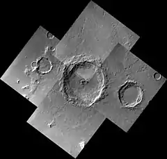 ![]() Mosaic of Viking Orbiter 1 images. Pál is at center and Dowa is at right. | |