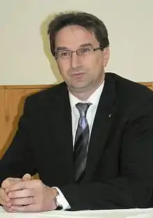Dr. Pál Völner (born 30 November 1962)[1] is a Hungarian jurist and politician, a former member of the National Assembly (MP) for Komárom (Komárom-Esztergom County Constituency IV) from 2010 to 2014, and for Esztergom (Komárom-Esztergom County Constituency II) from 2014 to 2022.[2] He served as Secretary of State for Infrastructure in the Ministry of National Development between 2 June 2010 and 5 June 2014.[3] He was a vice-chairman of the parliament's Economic Committee from 2014 to 2015. Völner served as Secretary of State for Justice from 9 October 2015 to 8 December 2021.[2]