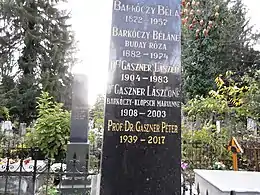 The parents of Péter Gaszner are László Gaszner (Komádi, November 4, 1904 - † 1983) and Marianne Barkóczy Klopsch (Budapest, March 15, 1908 - † 2003) a highschool teacher. His paternal grandparents were Károly Gaszner and Mária Kugler and his maternal grandparents were Béla Barkóczy (1872- † 1957) and Róza Buday (1882- † 1974). He completed his schools in Békéscsaba and Diósgyőr, later in the Újdiósgyőr High School.[1] He received his medical degree from the Medical University of Debrecen. Her children are Andrea (1965), Balázs (1969), Gábor (1978), Mariann (1984). Three of his children became doctors, Mariann chose a career in economics. Péter Gaszner rests in the Barkóczy-Gaszner crypt in Eger, in the Hatvani Cemetery (next to Szépasszony Valley).[2]