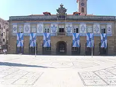 Praça do Almada, the civic center, is landscaped in an egg-shape, cut in half by the National Highway 13, and is tipped by buildings with local style. The building of the City Hall (1791) dominates the square. In the square, the Manueline pillory of Póvoa de Varzim (1514) is a national monument and represents Póvoa de Varzim's self-government and laws. Next to the pillory, the romantic gazebo (1904) follows the liking of the old Povoan bourgeoisie for its spare time.[1]