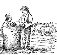 Păcală (Romanian, from a păcăli, "to dupe"; sometimes rendered Pâcală or Pîcală) is a fictional character in Romanian folklore, literature and humor. An irreverent young man, seemingly a peasant, he reserves contempt and irony for the village authorities (whether priest, boyar or judge), but often plays the fool. Several derivative works codify the various versions of Păcală anecdotes. Examples include: Pâcală, by Ion Creangă; Păcală în satul lui ("Păcală in His Village") by Ioan Slavici; Isprăvile lui Păcală ("Păcală's Achievements") by Petre Dulfu; and Întâmplările lui Păcală ("The Adventures of Păcală"), part of Legende sau basmele românilor.