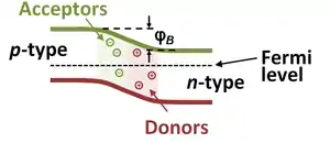 at any position within the diode at equilibrium.[1] Where pB and nB are the bulk majority carrier densities on the p-side and the n-side, respectively.