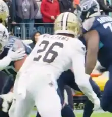 He made his professional regular season debut and first career start in the New Orleans Saints' season-opener against the Oakland Raiders and recorded five combined tackles and a pass deflection in their 35-34 loss. On September 21, 2016, Williams suffered a serious concussion while attempting to make a tackle on New York Giants' tight end Larry Donnell. During the play, Donnell's right leg appeared to strike Williams' shoulder while he attempted to tackle Donnell and then took an accidental knee to the back of the helmet by Saints' linebacker Craig Robertson. The force snapped Williams head and neck back.[24] Williams crumbled to the ground and players began frantically signaling for trainer that immediately responded and strapped Williams to a backboard and carted him off the field. It was reported he had movement of his extremities and was transported to a local hospital for testing and evaluation.[25][26] Williams finished the 16–13 loss at the New York Giants with two solo tackles and a pass deflection. On September 21, 2016, the New Orleans Saints placed Williams on injured reserve for the remainder of the season after he was diagnosed with a concussion.[27] He finished the 2016 season with seven combined tackles (five solo) and two pass deflections in two games and two starts.[28]