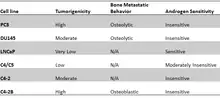 PC3 cells have high metastatic potential compared to DU145 cells, which have a moderate metastatic potential, and to LNCaP cells, which have low metastatic potential.[5] Comparisons of the protein expression of PC3, LNCaP, and other cells have shown that PC3 is characteristic of small cell neoendocrine carcinoma.[3]