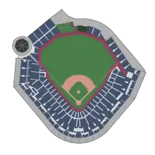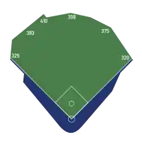 | Field size | Left Field – 325 feet (99 m) Left-Center – 383 feet (117 m) Deep Left-Center Field – 410 feet (125 m) Center Field – 399 feet (122 m) Right-Center – 375 feet (114 m) Right Field – 320 feet (98 m) Backstop – 51 feet (16 m) ![]() |
