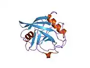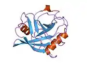 Peptidylprolyl isomerase E (cyclophilin E), also known as PPIE, is an enzyme which in humans is encoded by the PPIE gene on chromosome 1. As a member of the peptidyl-prolyl cis-trans isomerase (PPIase) family, this protein catalyzes the cis-trans isomerization of proline imidic peptide bonds, which allows it to facilitate folding or repair of proteins.[5] In addition, PPIE participates in many biological processes, including mitochondrial metabolism, apoptosis, and inflammation, as well as related diseases and conditions, such as ischemic reperfusion injury, AIDS, influenza, and cancer.[6][7][8]