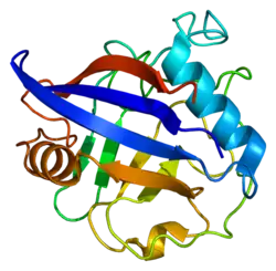 - Davis TL, Walker JR, Campagna-Slater V, et al. (2010). "Structural and biochemical characterization of the human cyclophilin family of peptidyl-prolyl isomerases". PLOS Biol. 8 (7): e1000439. doi:10.1371/journal.pbio.1000439. PMC 2911226. PMID 20676357.