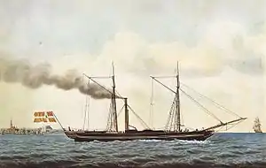 The route to Kiel saw some competition, beginning in 1835. The monopoly only counted for ships departing from Copenhagen, and a new company started a route to Kiel from Karrebæksminde, on the opposite side of Zealand. They bought the steamship Løven in 1835.[9] When the privileges concerning Copenhagen ran out in 1840, a more serious competitor arrived. The merchant M. T. Schmidt of Kiel and the merchant and banker Conrad Hinrich Donner of Altona made a partnership and acquired the steamship Christian VIII for the route. The new vessel sailed directly between the two cities and was thus a faster alternative. There were not enough passengers for two ships and in 1843, Frederik den Sjette left the route.[10]