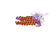 A carboxy-terminal region of one hundred and fifty-nine amino acids, the focal adhesion targeting domain (FAT), has been shown to be responsible for targeting FAK to focal adhesions.[21] This domain is composed of four alpha helices arranged in a bundle. The N-terminal helix contains a phosphorylatable tyrosine (Y925) implicated in signal transduction. Two hydrophobic patches between helices—one formed by the first and fourth helix, the other formed by the second and third helix—have been shown to bind short helical domains of Paxillin.[22]