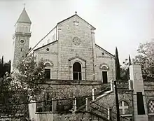 After several requests to return to Herzegovina, Buconjić's appeals were accepted.[3] He lectured in Rome until 20 December 1866, when he returned to the Franciscan friary in Široki Brijeg to teach dogma and morals.[3] In 1871 he gained the highest Franciscan academic title of jubilee lecturer.[11] The Custody's administration decided already in 1865 to establish new parishes, including the one in Buconjić's home village Drinovci. Buconjić helped them to find a lot for the construction of a new parochial residence. In 1871 Drinovci became at first a chaplaincy, while Buconjić was named its chaplain, and in 1873 it was elevated to the status of a parish, with Buconjić as its first parish priest.[12][13] While in Drinovci, Buconjić finished the construction of the parochial residence[11] and helped constructing a parochial church.[14] Buconjić was elected Custos of the Franciscan Custody of Herzegovina on 31 May 1874 for a three-year term.[11][15]