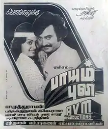 Paayum Puli (transl. Pouncing Tiger) is a 1983 Tamil-language martial arts film[1] directed by S. P. Muthuraman and written by Panchu Arunachalam. Produced by AVM Productions, the film stars Rajinikanth and Radha. Inspired by The 36th Chamber of Shaolin (1978), it revolves around a meek man who learns martial arts to seek vengeance from a gang of criminals who murdered his sister.