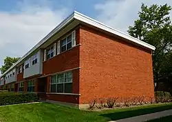 The Pacesetter Gardens Historic District is a historic district encompassing twelve townhouses along South Lowe Avenue in Riverdale, Illinois. The townhouses were built in 1960 by Harry J. Quinn, a developer who constructed and advocated for multi-family housing. Prior to 1960, Riverdale was mainly a community of single-family homes; Pacesetter Gardens and another nearby development by Quinn diversified the city's housing and made it easier for lower-income residents to live there. Quinn, who was also an architect, designed the buildings, which feature simple exteriors with box bay windows and a horizontal emphasis. Ten of the twelve townhouses have eight units, while the remaining two have four and six respectively. Quinn planned each unit according to minimum house design, a technique popular with housing reformers that emphasized compactness and eliminated less essential rooms such as hallways and dining rooms.[2]