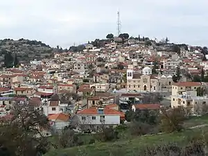 The village has two main churches, St George (Ayios Yeorgios) and St Paul (Apostolos Pavlos). The first primary school was established in 1855 and moved to its current location in 1938. Most of these older buildings (and many houses) are built in the local Pachna stone which has its own unique chalky yellow character.