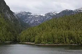 This ecozone is the most diverse in Canada, and perhaps the world.[1] Its northern inland extent is primarily alpine tundra, whereas the picturesque northern coast features numerous fjords and valleys, with massive glaciers common in the mountains. To the south, the small flatland of the Fraser Valley is located at the southern end of the Coast Mountains, noted for temperate rainforests.[2] In its marine areas are notable undersea kelp forests.