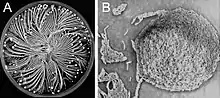 Paenibacillus vortex is a species of pattern-forming bacteria, first discovered in the early 1990s by Eshel Ben-Jacob's group at Tel Aviv University.[1] It is a social microorganism that forms colonies with complex and dynamic architectures. P. vortex is mainly found in heterogeneous and complex environments, such as the rhizosphere, the soil region directly influenced by plant roots.