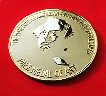 The Paez Medal of Arts is a decoration awarded by The Venezuelan American Endowment for the Arts (VAEA) that is presented once a year to an individual or group that has had an impact and contributed to excellence, growth, support and the proliferation of the arts in Venezuela and the United States.[1][2] It is named in honor of José Antonio Páez, leader of the Independence of Venezuela, who lived in exile the last years in New York, where he became a philanthropist.[3]