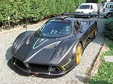 The Zonda Roadster F Club Sport Final Edition was a special version of the Zonda Roadster F Club Sport developed to commemorate the end of the regular production of the Zonda. Commissioned by Super Vettura UK, the car features a bare carbon-fibre body finished in a matte black colour and interior finished in a grey colour. The engine in the car was tuned to have a power output of 650 PS (478 kW; 641 hp). The car was number 24 of the 25 Zonda Roadster F Club Sport cars built.[36]