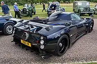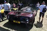 The Zonda HP Barchetta was unveiled at the 2017 Pebble Beach Concours d'Elegance as a present to the company's founder, Horacio Pagani for his 60th birthday as well as to commemorate the 18th anniversary of the Zonda. It has unique exterior design cues which makes it different from other Zondas produced with the most distinguishable features being the barchetta body style and rear wheel covers inspired by group C race cars, making it the first Pagani to ever use this styling. It also has a rear spoiler, air intakes and rear lights taken from the 760 series cars. Power comes courtesy of the 7.3 L (445 cu in) Mercedes-Benz V12 engine rated at 800 PS (588 kW; 789 hp) and 850 N⋅m (627 lb⋅ft) of torque making it the most powerful road legal Zonda ever produced. It borrows its seats and suspension from the Huayra BC along with its power output being identical to the BC with the only difference being that the BC has a Bi-turbo engine while the HP Barchetta is naturally aspirated. The wheels of the car also have different colour inlays with the wheels at the left having gold and the wheels at the right having blue inlays. Production is limited to just 3 units with one unit retained for Horacio Pagani's personal collection.[24] The Zonda HP Barchetta marks an end to the Zonda's production run. The 760 series cars and other special edition Zondas can still be commissioned upon customer request. [25][26]