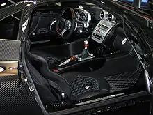 The Zonda Roadster F Clubsport is a light weight version of the Zonda Roadster F. It has an extensive use of the new carbo-titanium material developed Pagani as well as having an upgraded engine. It was tested by Top Gear's The Stig along with James May and achieved a lap time around their test track of 1:17.8, beating the Bugatti Veyron 16.4 tested during the same episode, but lost in a quarter mile drag race against the Veyron by nearly 2.5 seconds.[17] German racing driver Marc Basseng managed to lap the Zonda F Clubsport around the 20.8 kilometres (12.9 mi) Nürburgring Nordschleife in 7:24.7.[18]