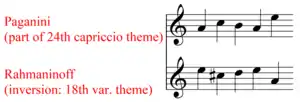 The slow 18th variation is by far the best known, and it is often included on classical music compilations without the rest of the work. It is based on an inversion of the melody of Paganini's theme. In other words, the A minor Paganini theme is literally played "upside down" in D♭ major, with a few other changes. Rachmaninoff himself recognized the appeal of this variation, saying "This one is for my agent."[4]
