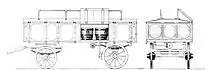 The Rochdale system was first used in 1869. It used a wooden tub, or pail (sometimes half of a petroleum barrel), which was placed under the closet seat. The pails were often circular (to aid cleaning),[10] and were designed to be easily handled and of a size that encouraged regular collections.[11] The top of the pail carried a cast iron rim about 3 inches deep to receive a tight-fitting inner lid. The pails were collected on a weekly basis during the day. Each pail was secured by its lid and loaded onto a sealed 24-bay wagon to be taken to a depot where they were emptied, cleaned and returned. While the pail was removed from the closet, a replacement was installed in its place. In 1874, Rochdale Corporation employed five such wagons in full-time service, collecting from 3,354 privies spread across the town. By contrast, with a much larger population, Manchester Corporation employed 73 wagons.[12] By 1875, 4,741 pails were in use, and in 1876 the number was 5,566. A separate cart accompanied the wagon to collect other household refuse which was collected from a separate chamber in the pail closet.[13][14]