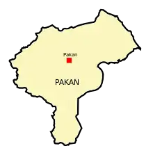 Pakan District is an administrative district in Sarikei Division, Sarawak, Malaysia, covering an area of 924.6 square kilometres (357.0 sq mi). The town of Pakan is the capital of the Pakan district, located 45 km from the town of Sarikei.