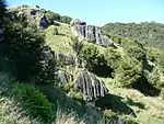 Apart from recent alluvial deposits, the other main rock in the valley is Hauturu Sandstone, which is mid to late Whaingaroan, about 30 million years old. It is commonly knobbly due to resistant bands and lenses of hard calcareous sandstone in soft friable quartzofeldspathic sand.[3]