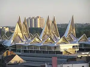 The Palace of Justice Antwerp (Dutch: Justitiepaleis Antwerpen French: Palais de justice d'Anvers) commonly known as the Antwerp Law Courts (Dutch: Gerechtsgebouw Antwerpen), De Frietzakskes,[5][6] and the Butterfly Palace (Dutch: Vlinderpaleis), is a law court building located in the Belgium city of Antwerp on the site of the old Antwerp-South railway station. The building was built over the Bolivar Tunnel (Dutch: Bolivartunnel) and it houses eight district civil and criminal courts. It was inaugurated on 28 March 2006 by King Albert, Minister of Justice Laurette Onkelinx, Minister of Finance Didier Reynders, governor Camille Paulus and mayor Patrick Janssens.[7] The building was designed by the Richard Rogers Partnership, VK Studio and Arup.