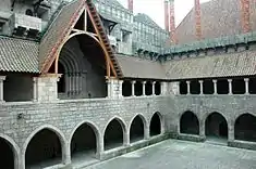 The residence was ordered to be built in the first quarter of the 15th century (likely 1420 to 1422) by Afonso, Count of Barcelos, the illegitimate son of John, and future Duke of Braganza, following his return to Portugal after a series of diplomatic missions to the Courts of France, Venice, Aragon and Castile.[1] The construction of this building marked the concretization of his second marriage, when he took residence in the town.[2][3] The project was given, as some authors have suggested, to French architect Antom. Yet, by 1442, it was still under construction when the Regent Peter came to Guimarães and stayed at the Palace, at the time conferring on his half-brother the title of 1st Duke of Braganza.[1] The commission continued into 1461, when Afonso died:[4] the property and titles passed on to his brother, Fernando, although the widow, Constança de Noronha, continued to live at the residence and received the land rents from the holdings in Guimarães.[1]