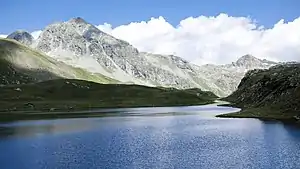 The Palasinaz Lakes (Laghi Palasinaz in Italian) are a group of lakes located in the Italian Alps, in the Aosta Valley region of northern Italy. They are of glacial origin and are situated in the southern foothills of the Monte Rosa group and are accessible from the villages of Brusson and Champoluc. The group is composed of the following lakes: the Lac Long, the Lago Pocia, the Lac du Couloir, the Lac Vert, and, the Lago della Battaglia.[1]