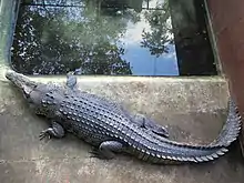 Also known as the Crocodile Farm, the PWRCC is dedicated to keeping two endemic crocodile species in captivity – the Philippine crocodile (Crocodylus mindorensis) and the Saltwater crocodile (Crocodylus porosus). The facility has accreditation from the Convention on International Trade in Endangered Species (CITES) which it obtained on January 4, 1997, allowing it to sell Saltwater crocodiles for commercial purposes.[1] While it is illegal for the center to sell Philippine crocodiles, Saltwater crocodiles are sometimes sold for their leather.[2] It also hosts other animals and plants including Palawan endemic species. Some animals were temporarily kept in the facility for rehabilitation due to being found injured in the wild or seized by authorities from illegal captivity and are meant to be released back to the wild. Some animals are kept under long-term captivity in the PWRCC. The PWRCC is also open to the public and organizes informational tours. As of October 2021, the facility hosts 1,450 individual crocodiles and 245 other wild animals.[1]