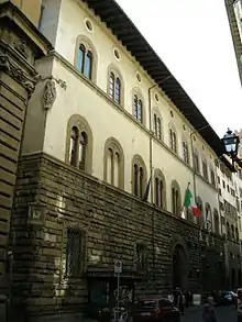 The Palazzo Pazzi, also known as the Palazzo della Congiura or Palazzo Pazzi-Quaratesi is a Renaissance-style palace. It is located on Via del Proconsolo 10 at the corner with Borgo Albizzi in Florence, region of Tuscany, Italy. The palace is between the Palazzo Nonfinito and the Palazzo Pazzi-Ammannati to the north.