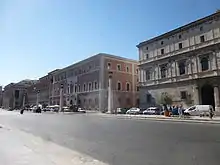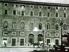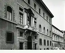 After Raphael's death, the building was sold to the Cardinal of Ancona, Pietro Accolti, who already owned another palazzo on via Alessandrina, separated from the building through a house which the Cardinal bought later.[5] After the death of the Cardinal, the palace was inherited by his nephew Benedetto, Cardinal of Ravenna.[5] Accused of corruption, the Cardinal was imprisoned in Castel Sant'Angelo in 1534 and released after paying a fine of 59,000 scudi to the Apostolic Chamber.[6] The cardinal had to borrow the huge sum from the Florentine bankers Giulio and Lorenzo Strozzi, who later acquired his palace for 6,000 scudi as partial reimbursement of the loan.[6] However, the Cardinal reserved the right to redeem the building after repaying his creditors, and this led to a lawsuit between his heirs and the heirs of the Strozzi. The latter won, but in 1576 they were forced to sell the building, which was crumbling and whose walls had been shored up, to Cardinal Giovanni Francesco Commendone.[6][7]
