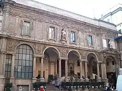 The Palazzo delle Scuole Palatine (Palace of the Palatine School) is a historic building of Milan, Italy, located in Piazza Mercanti, the former city centre in the Middle Ages. It served as the seat of the most prestigious higher school of medieval Milan. Many notable Milanese scholars of different ages studied or taught in these schools; Augustine of Hippo and Cesare Beccaria,[1] among others, served as teachers in the Palatine. The current building dates back to 1644, when it replaced an older one, which had the same function and was destroyed by a fire.