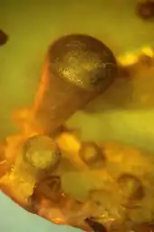 - Poinar, G. O. Jr. (2017). "A mermithid nematode, Cretacimermis aphidophilus sp. n. (Nematoda: Mermithidae), parasitising an aphid (Hemiptera: Burmitaphididae) in Myanmar amber: a 100 million year association". Nematology. 19 (5): 509–513. doi:10.1163/15685411-00003063.