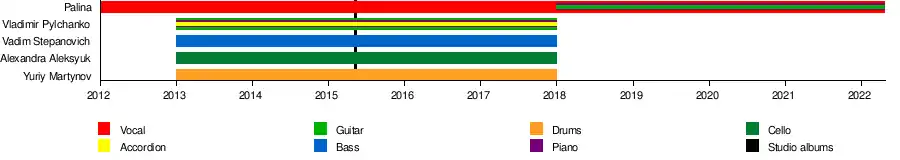 In February 2017 the singer was a guest of Siarhei Budkin’s program "Belsat Music Live", where she acted in a new stage format without a guitar and her musical band.[19] In that year she performed the back vocal part on the Helaiv's song "Anxiety" from the "Too Easy" EP.[20]