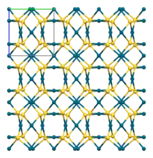 The crystal structure of PdS contains approximately square planar palladium centres and tetrahedral sulfur centres.[1]